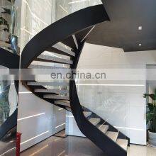 Hot Selling Arc Staircase Interiors Double Stringer Arc Stairs Staircase With Wood Tread Lights