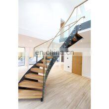 High Quality Steel Structure Staircase Laminated Glass Wood Curved Stairs for Sell