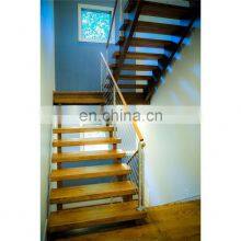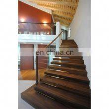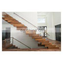 Prefabricated Apartment Building Wood Stairs Design Indoor Wood Tread Floating Stairs