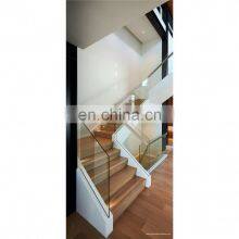 Double Stringers Glass Treads Straight Stairs With Glass Railings