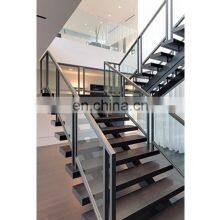 - New Design Modern Floating Staircase Design Glass Railing Metal Beam Mono Stringer Staircase