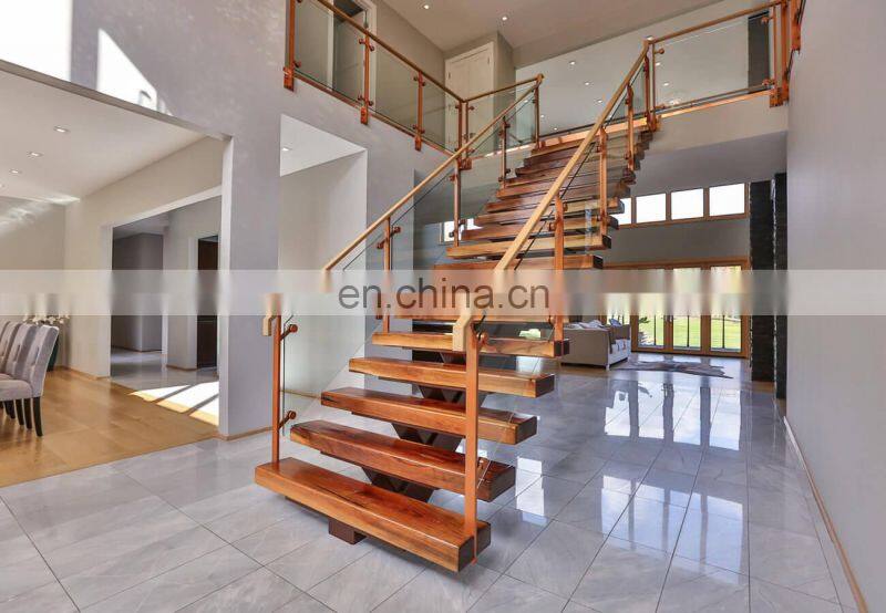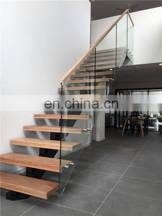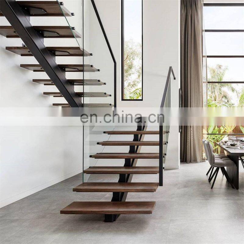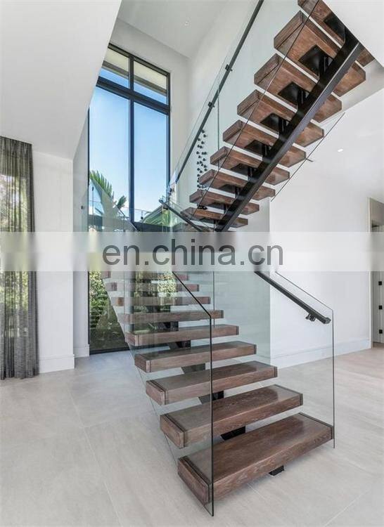 - New Design Modern Floating Staircase Design Glass Railing Metal Beam Mono Stringer Staircase