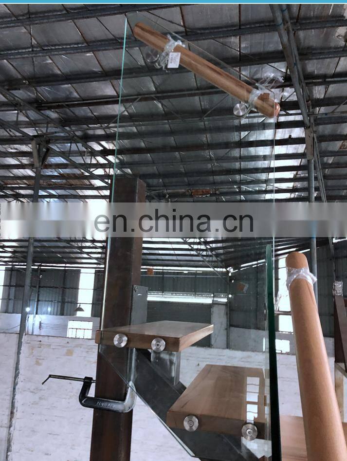 Modern Style Indoor Mono Stringer Glass Wood Staircase With Stainless Steel Hanrail