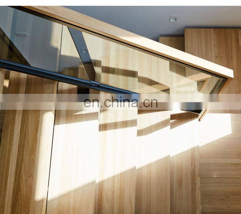 Modern Indoor House Stairs Wood Handrail Glass Railing Staircase Design