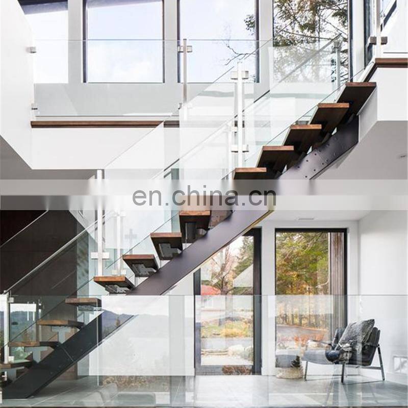 - New Design Modern Floating Staircase Design Glass Railing Metal Beam Mono Stringer Staircase