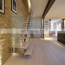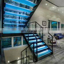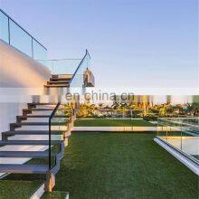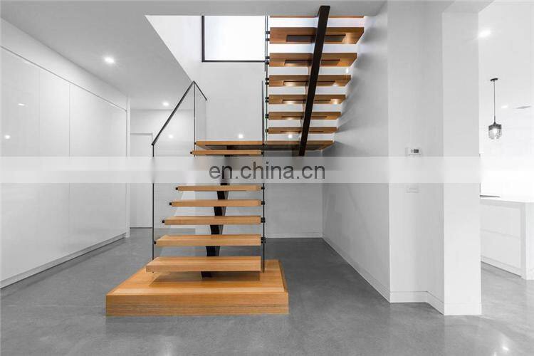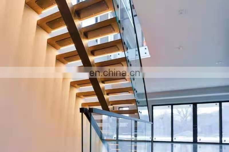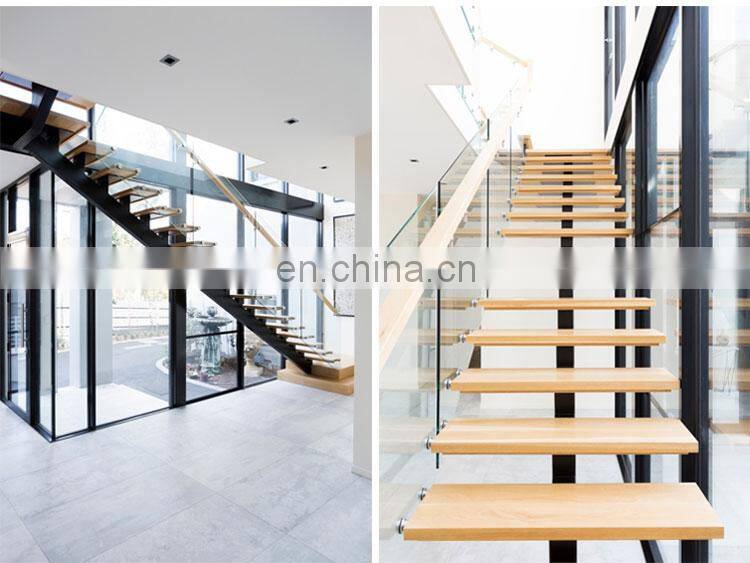 - New Design Modern Floating Staircase Design Glass Railing Metal Beam Mono Stringer Staircase