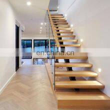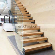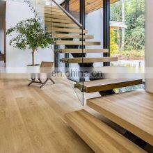 Modern Luxury Floating Stairs Wooden Design Staircase Glass Step Wooden Treads For Villa