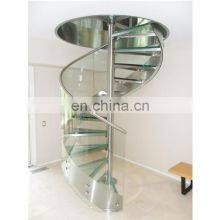 Modern Indoor Stairs Stainless Steel Wooden Steps Glass Spiral Staircase