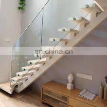 Indoor Tempered Glass Balustrade Straight Staircase Wood Stairs With Glass Standoff Railing