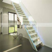 Best Quality Wooden Tread Glass Railing Stairs Modern Staircase Designs With LED Stripe