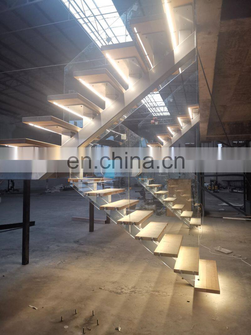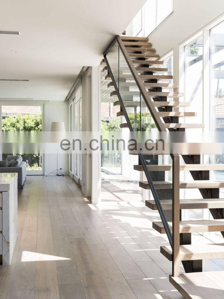 - New Design Modern Floating Staircase Design Glass Railing Metal Beam Mono Stringer Staircase