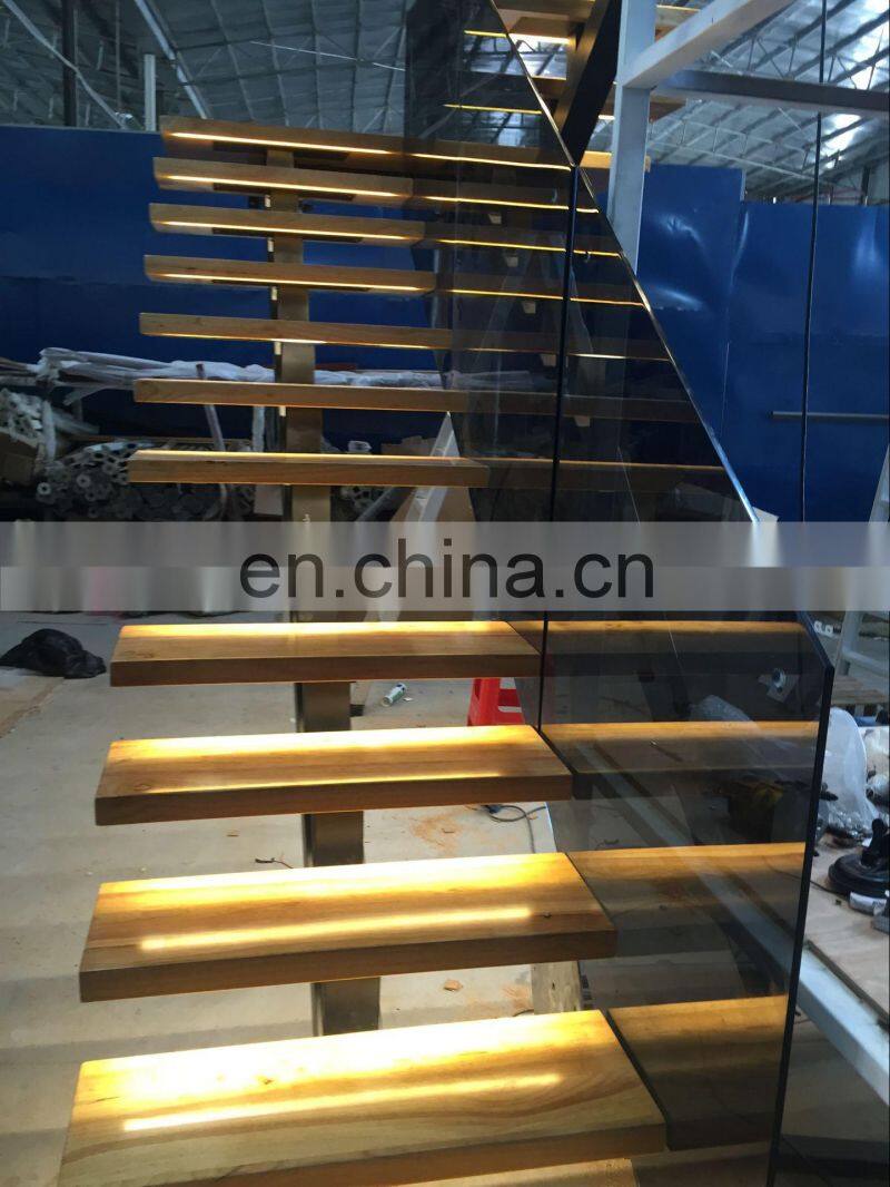 Wholesale Customize Solid Wood Tread Stairs Floating Staircase Spiral Staircase With LED Stripe