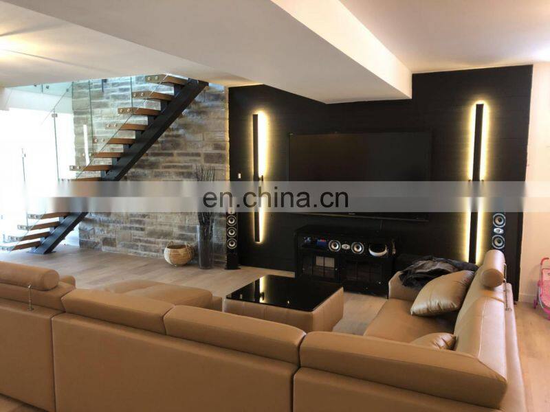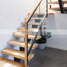 Modern Straight / L-shaped staircase Steel Beam indoor wooden stairs