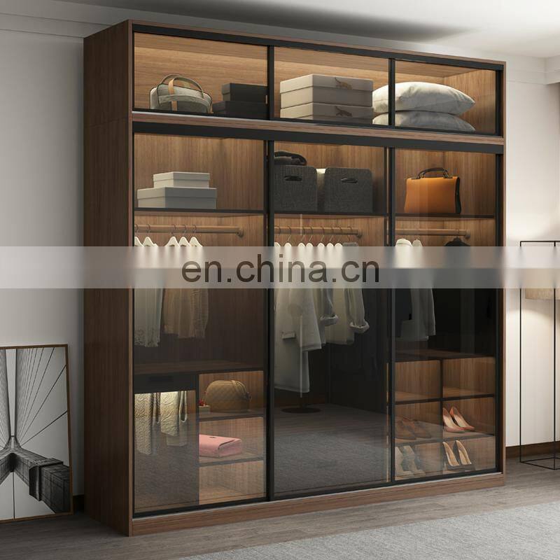 Modern Bedroom Furniture Sliding Glass Door Design Walk in Wardrobe With Mirror Door