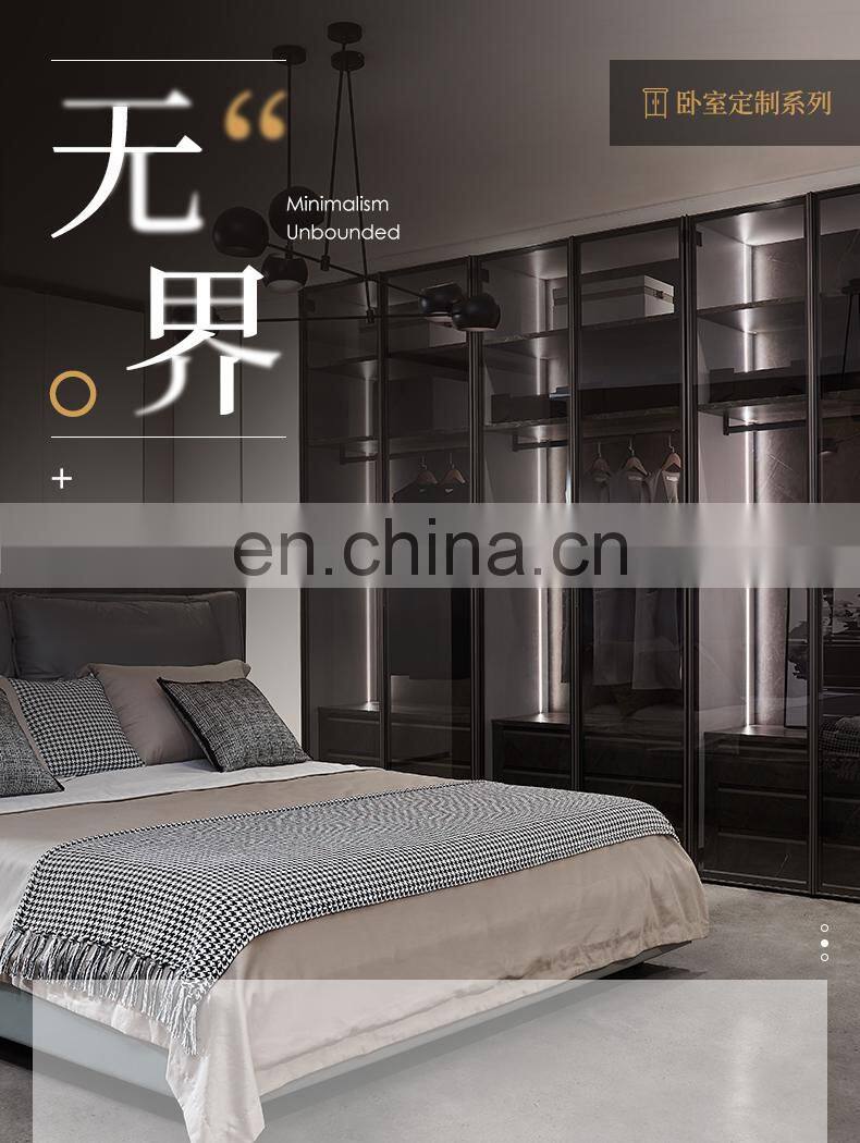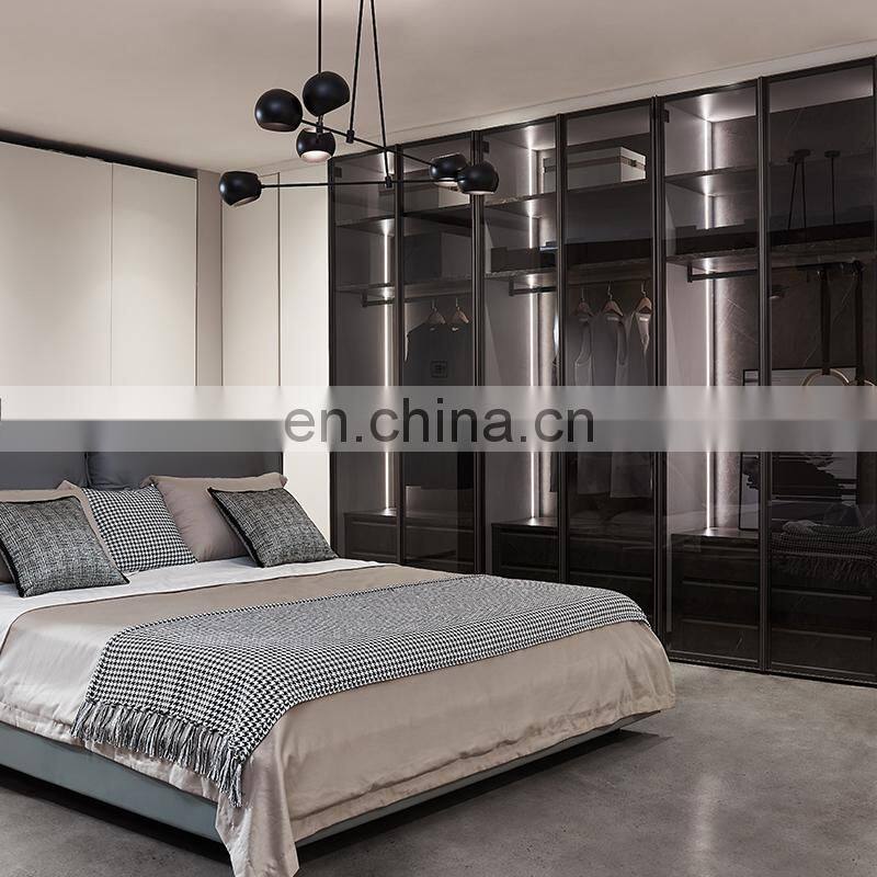 Modern Bedroom Wardrobe Closet Customized Aluminum Frame Glass Door Wardrobes