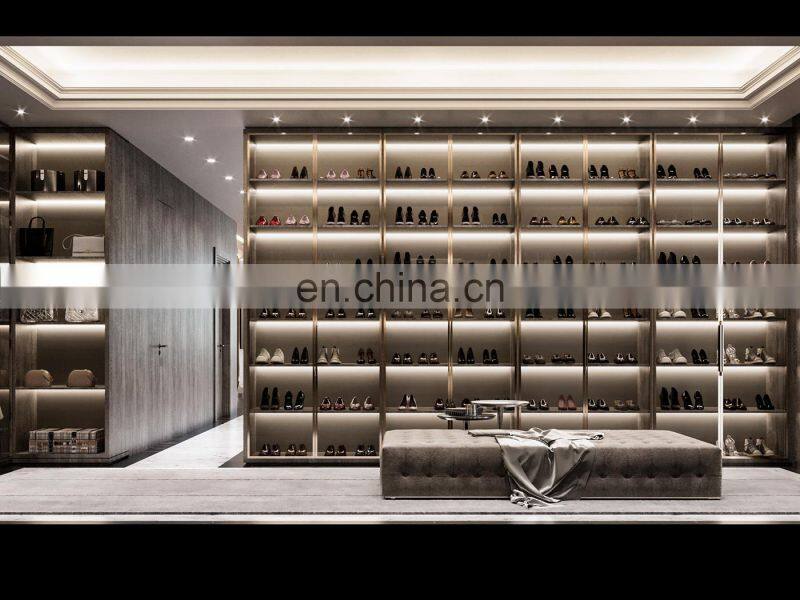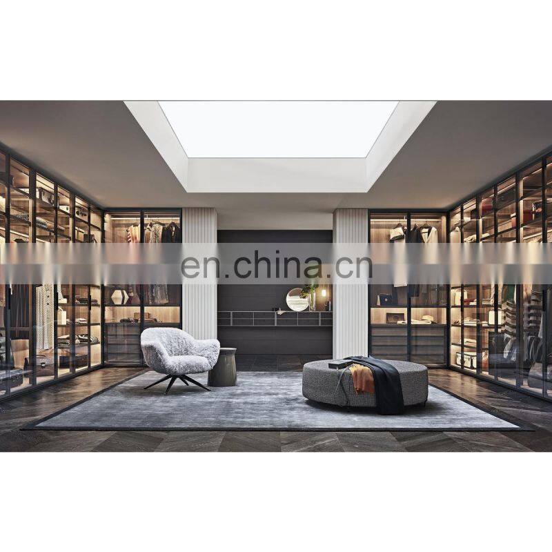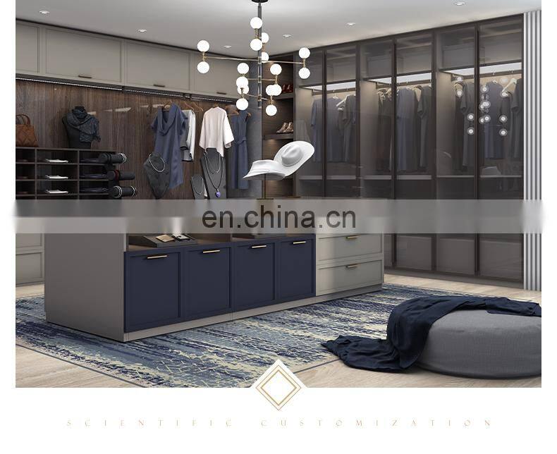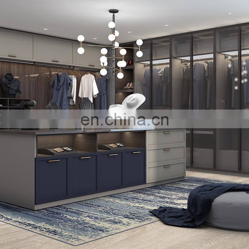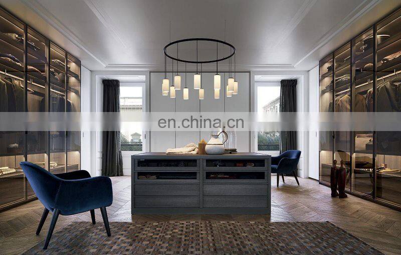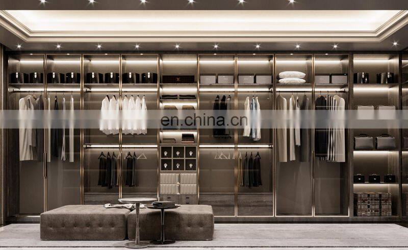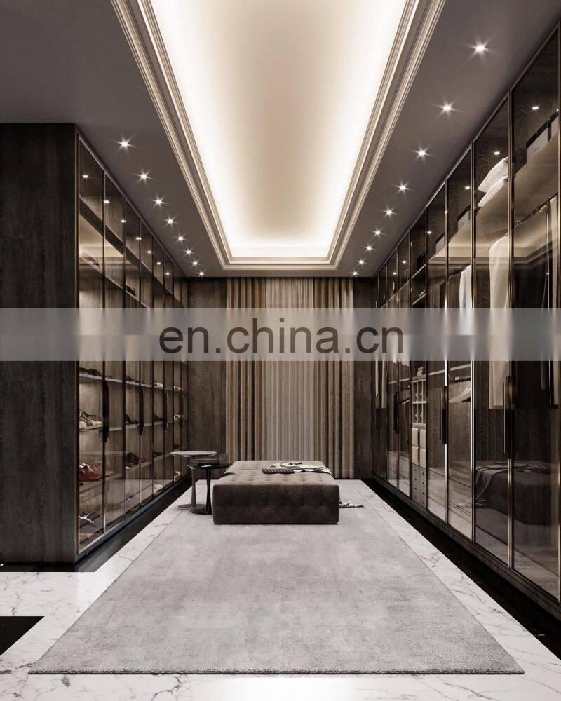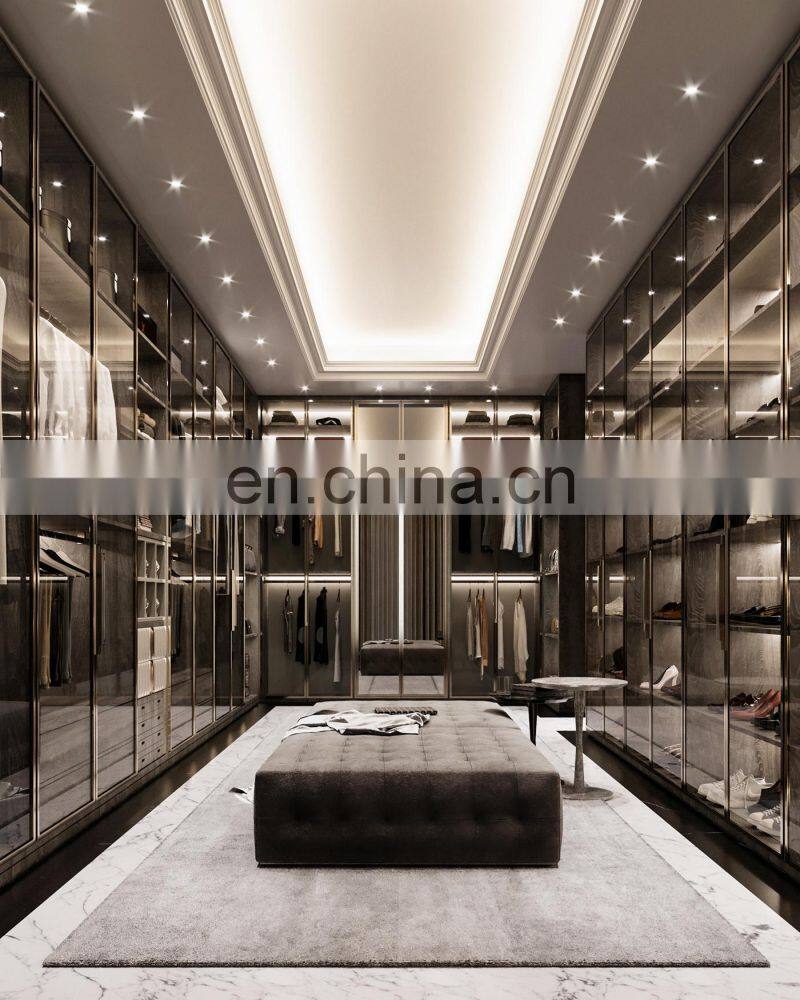 Modern wardrobe clost Custom glass door wooden walk in wardrobe