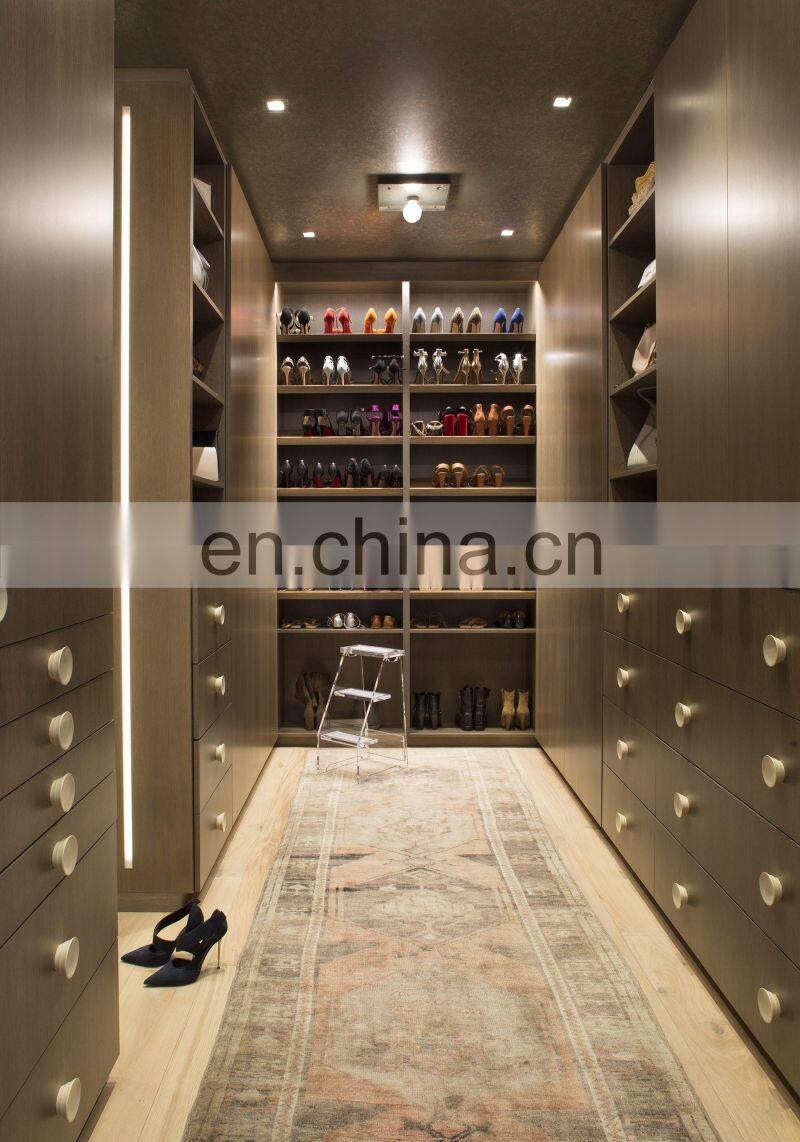 Customize Modern Led Light Wooden Walk in Closets Luxury Big Bedroom Set Wardrobes With Shoe Racks