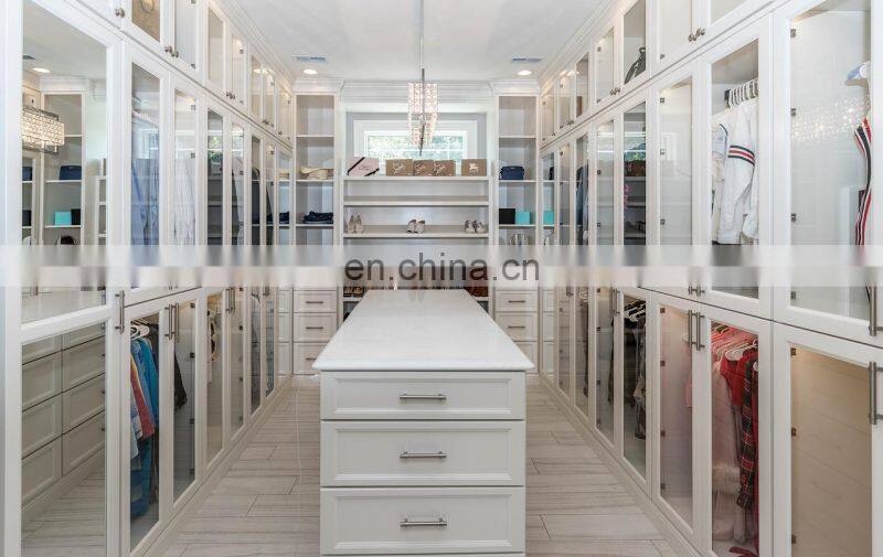 2021 New Glass Door Wooden Clothes Wardrobe Modern Walk in Closet
