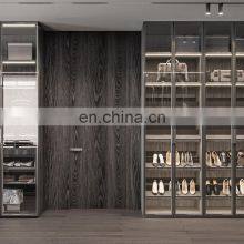 Women's Dressing Room Modern Luxury Glass Door Walk in Closet With Shoe Rack Cabinet