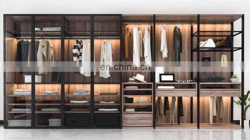 Modern Home Office Wooden Black Metal Bedroom Sets Wardrobe Closet