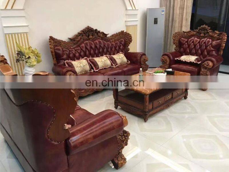 Antique Sofa Combination Living Room Set Classic Real Genuine Leather Sofas