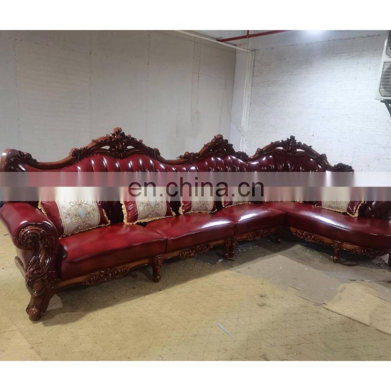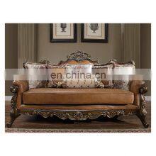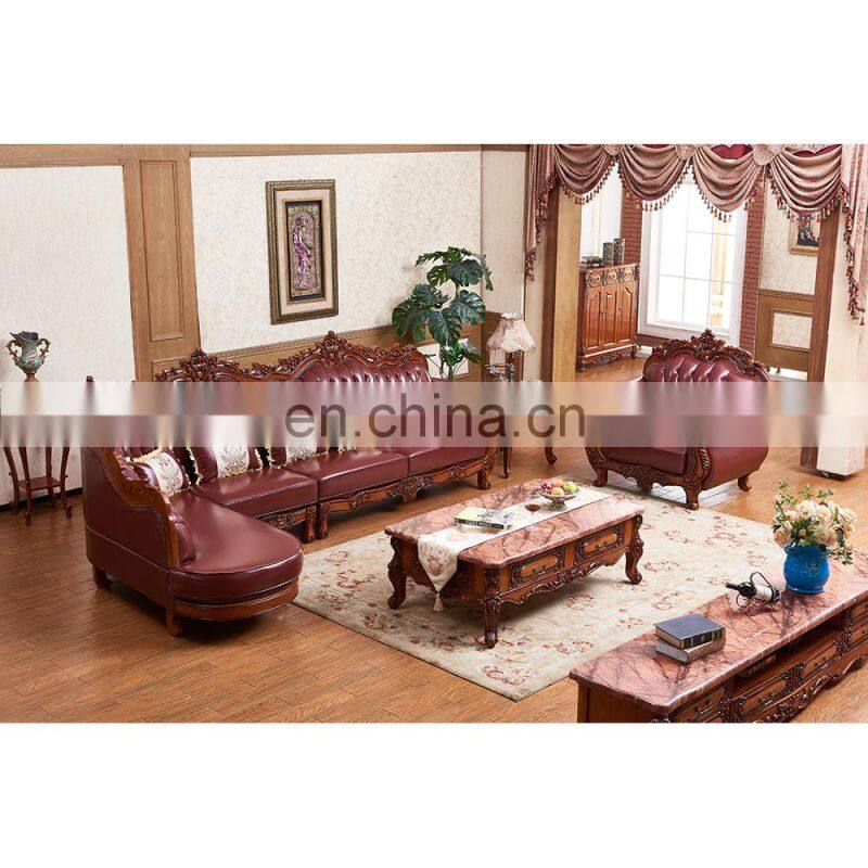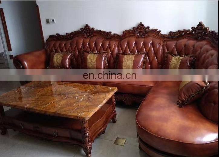 European Italian Style Luxury Classic Solid Wood Genuine Leather Living Room Chaise Longue Sofa Set Furniture