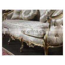 European Italian Style Luxury Solid Wood Genuine Leather Living Room Chaise Longue Sofa Set Furniture