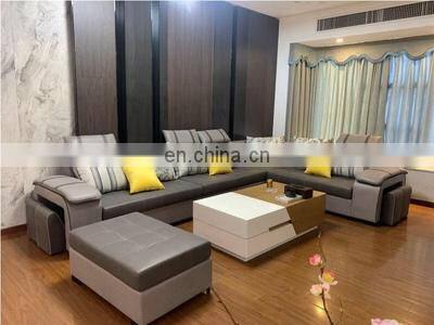 Luxury Solid Wood Modern Living Room Corner Combination Leather Sofa