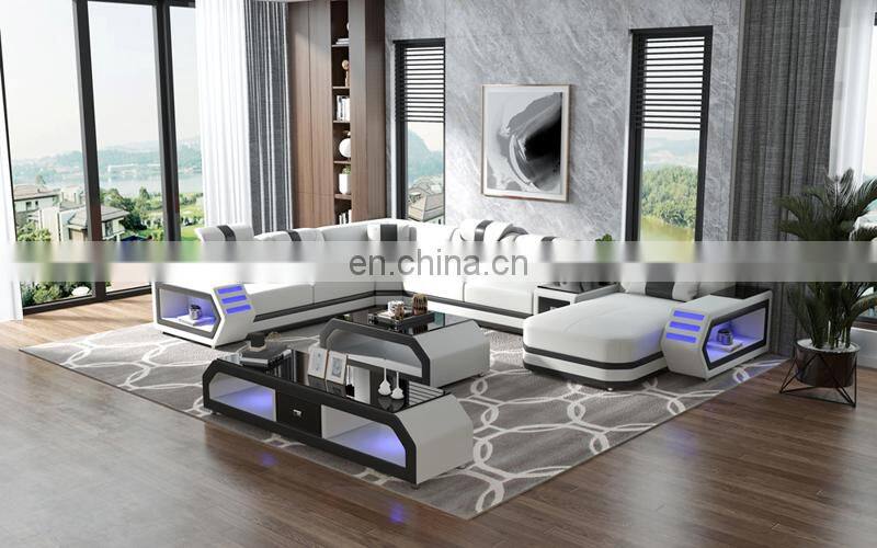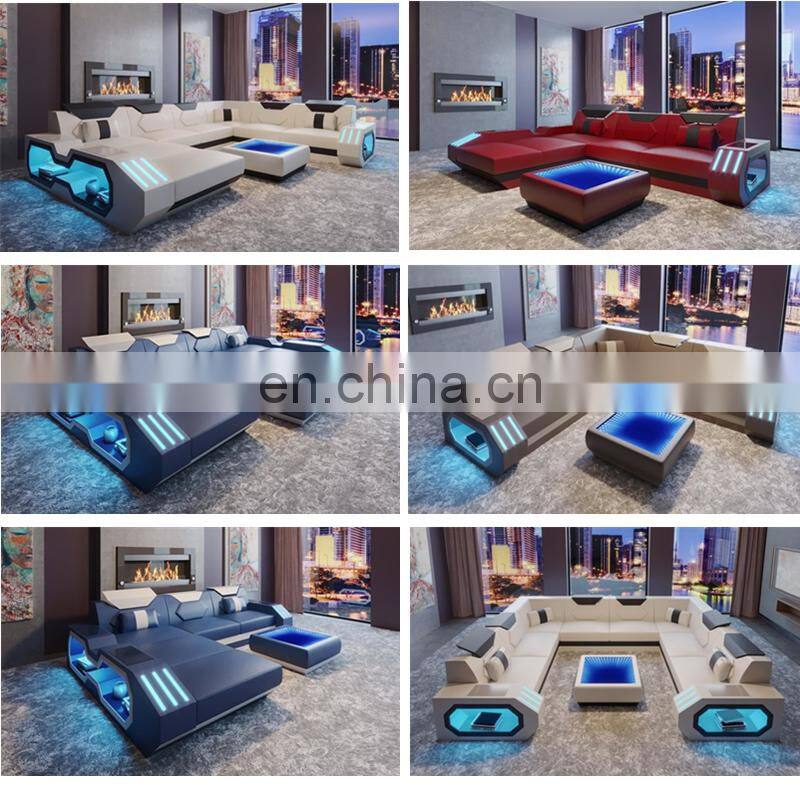 European U-shaped Electric LED Sofa Set Leather Sofa