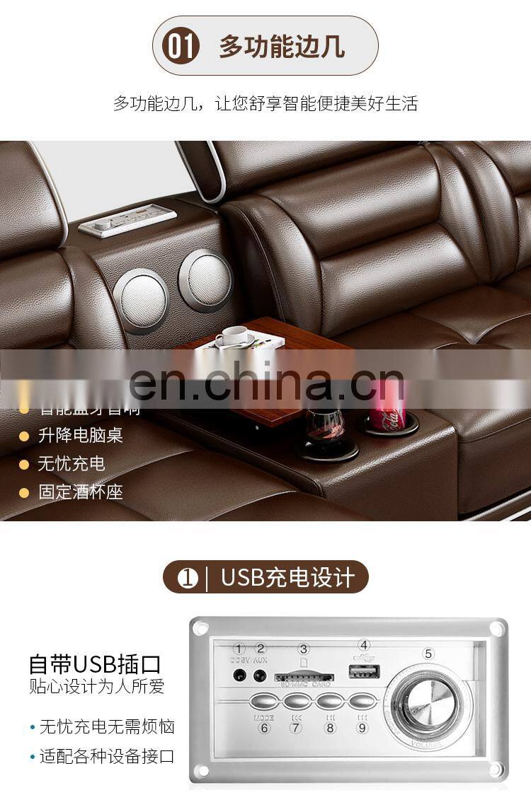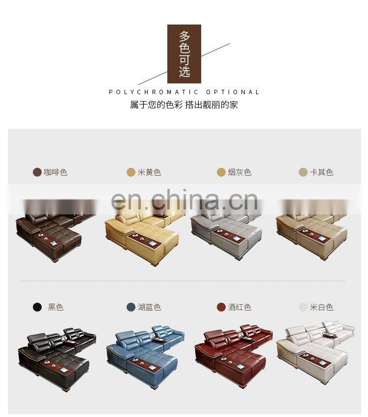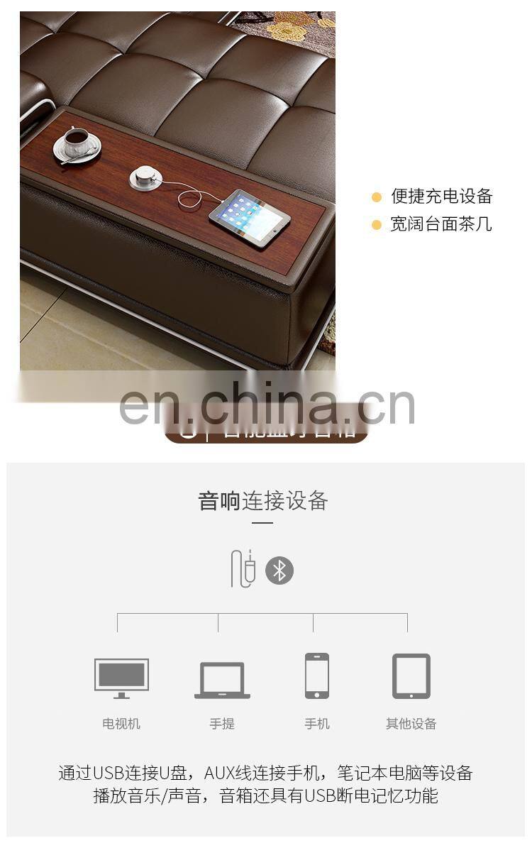 2021 Technology Speaker Top Grain Leather Electric LED Sectional Sofa Set