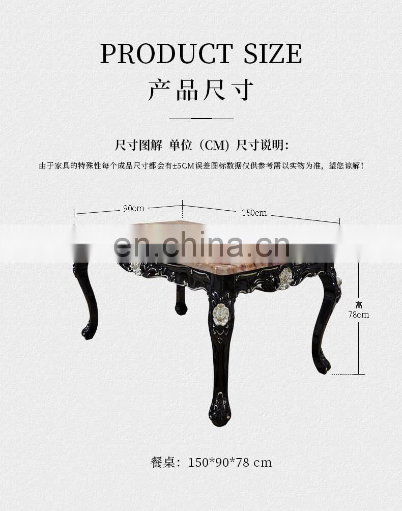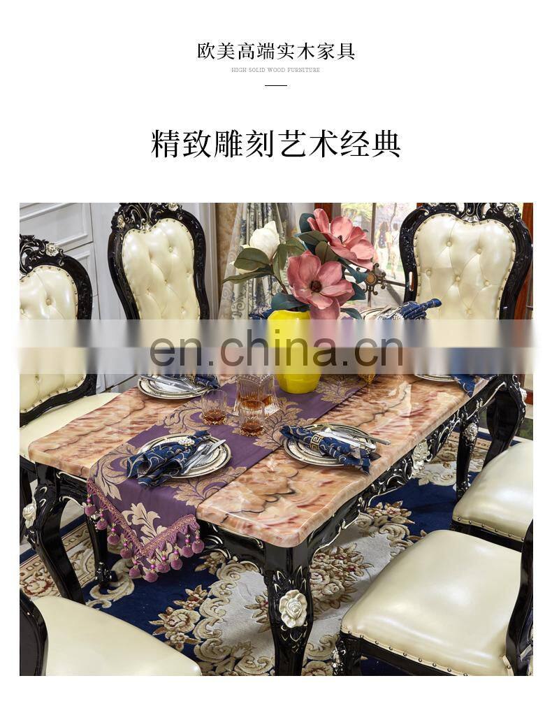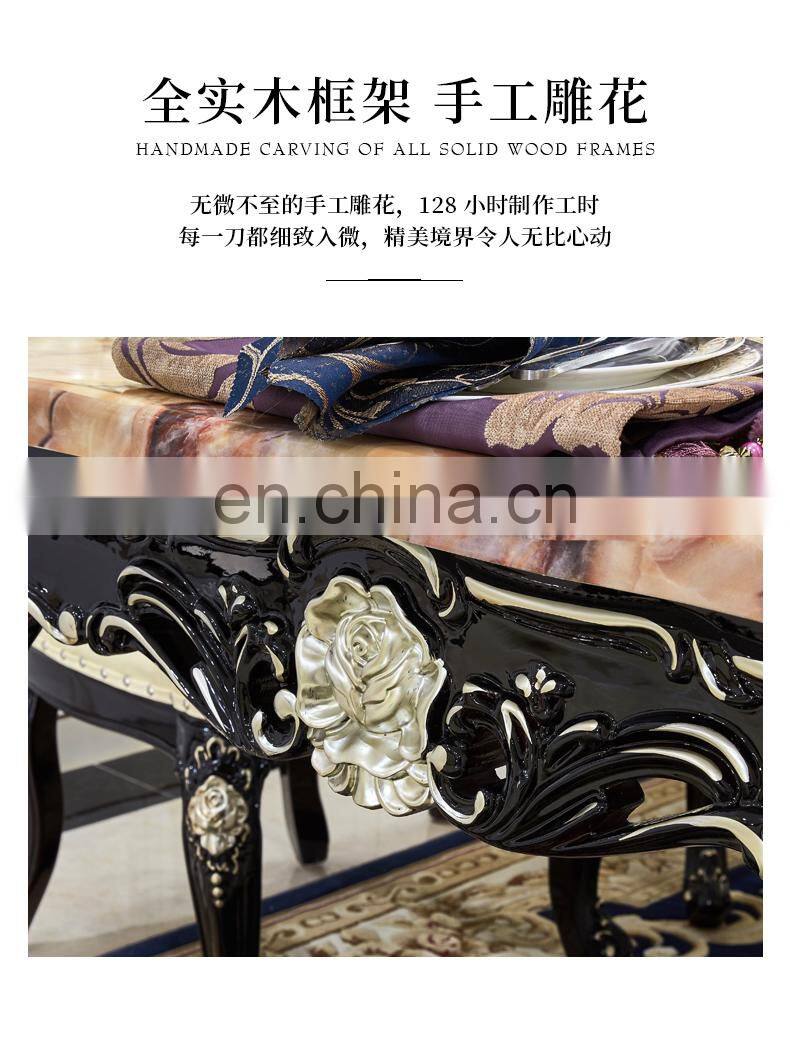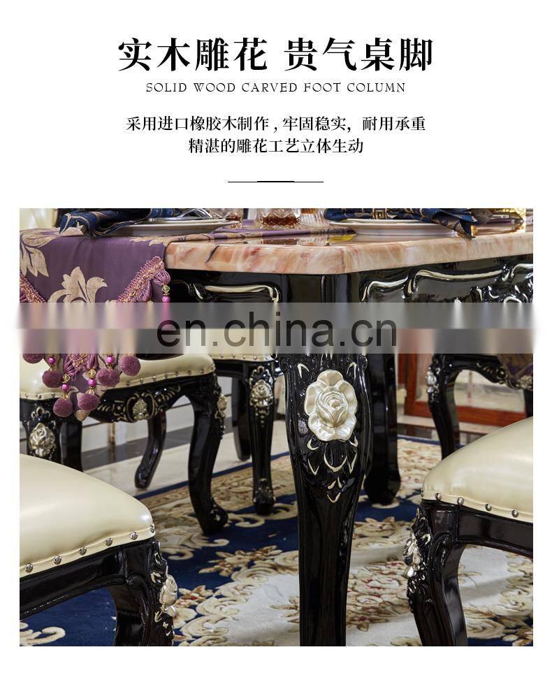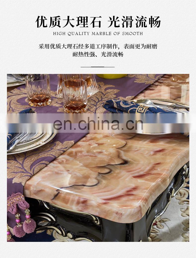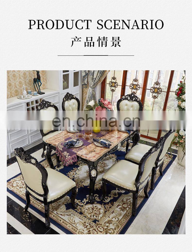 European Marble Top Solid Wood Hand Curved Design Tables Set for 6 Dining Room Furniture