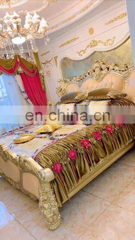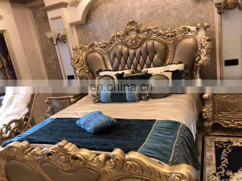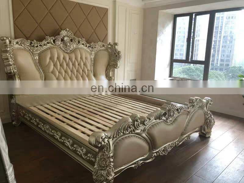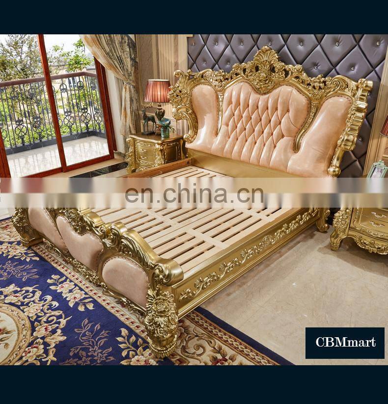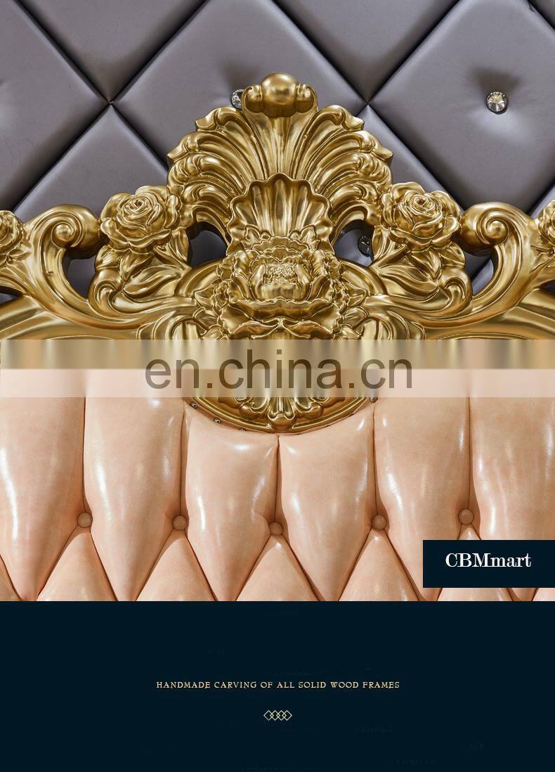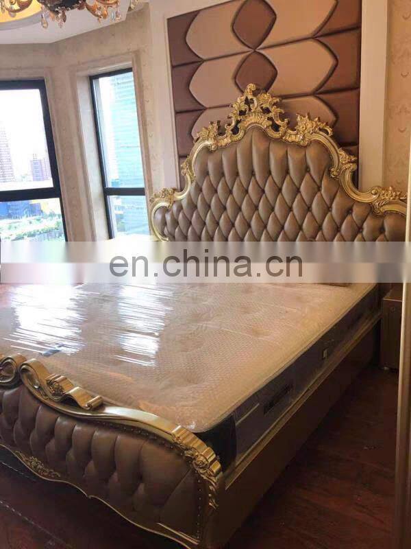 European Antique King Queen Size Bed Wooden Frame Cama Soft Beds Bedroom Set Furniture