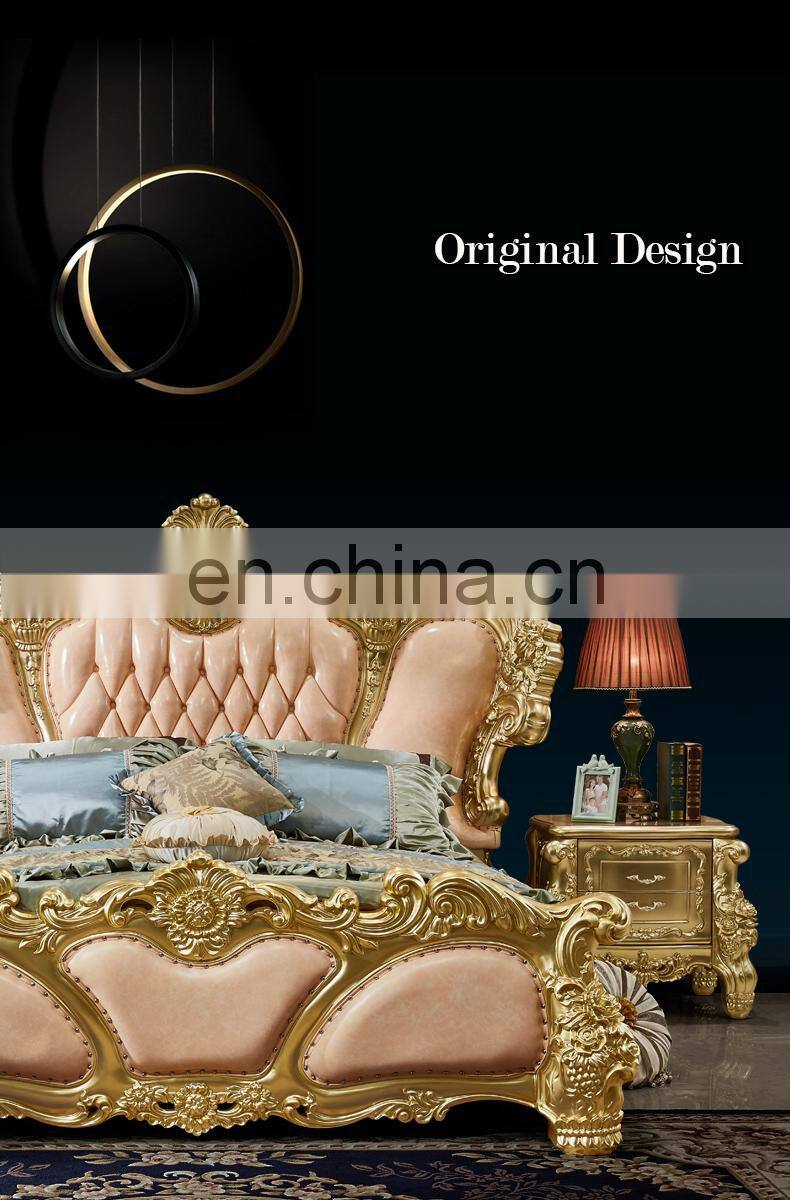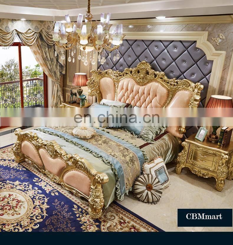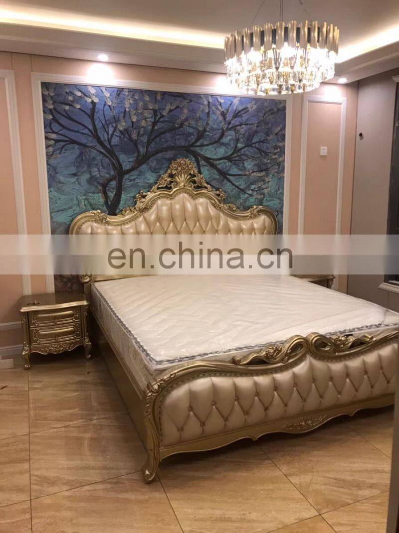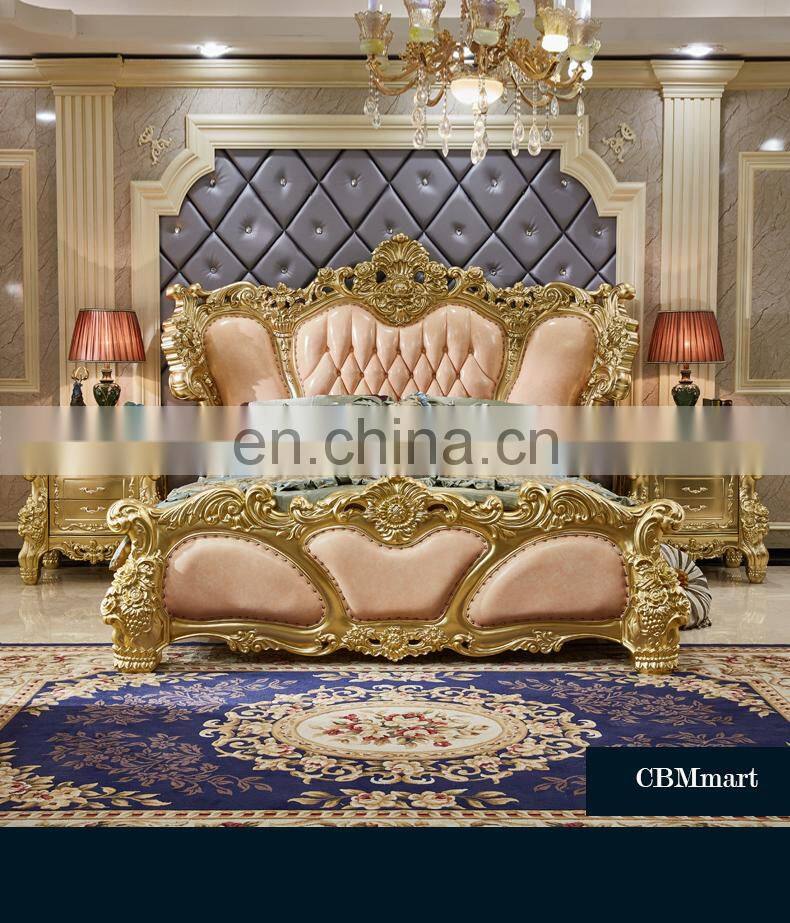 European Antique King Queen Size Bed Wooden Frame Cama Soft Beds Bedroom Set Furniture