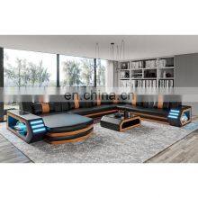 New Arrival Living Room Sofas Super Modern Style Living Room Furniture LED Lamps Popular Leather Couch