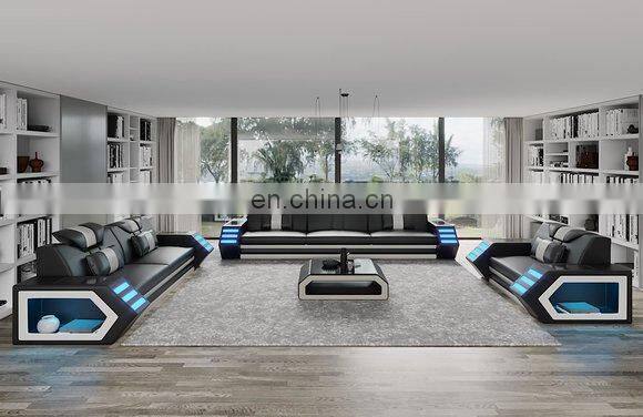 New Arrival Living Room Sofas Super Modern Style Living Room Furniture LED Lamps Popular Leather Couch