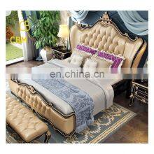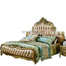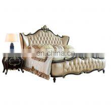 2021 Popular Europe Style Furniture Luxury Classic Upholstered Wooden Carving Genuine Leather Bed