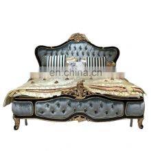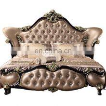 Antique Hand Carved Bed Luxury High Quality Classical Style Bedroom Furniture European Leather Bed