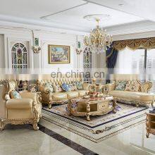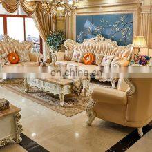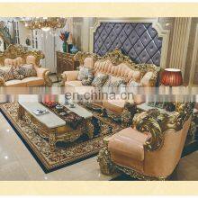Luxury Style Antique Sofas Golden Antique Leather Living Room Sofa Set Furniture Muebles