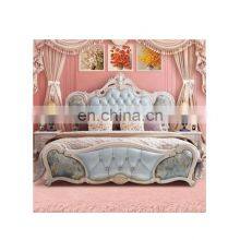 2021 New Arrivals Luxury Quality French BedrooAContemporarym Wedding King Size Wood Carving Leather Wall Bed European Style Bed