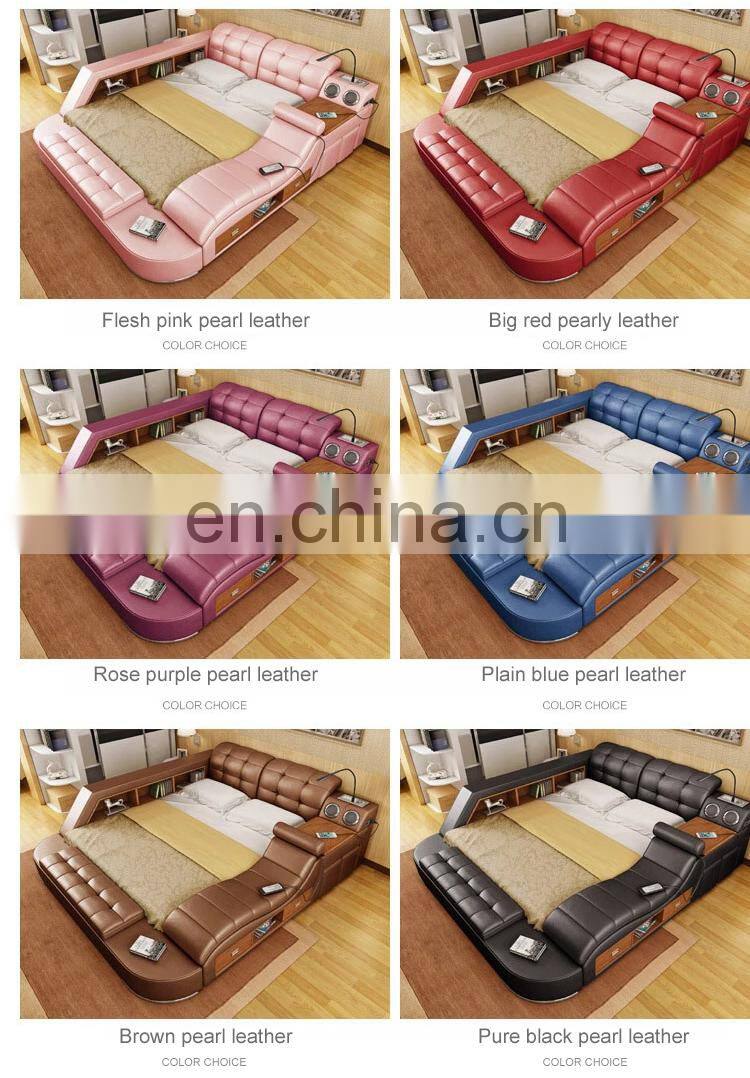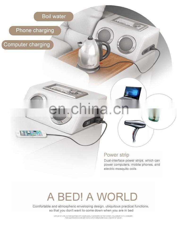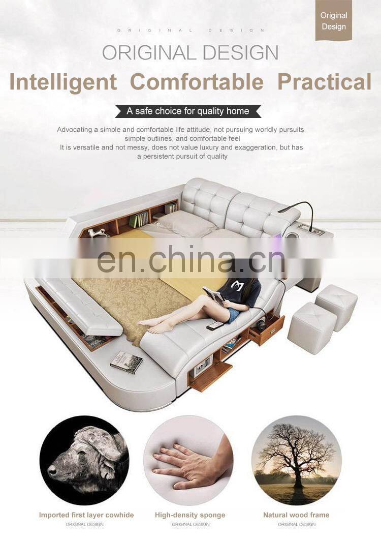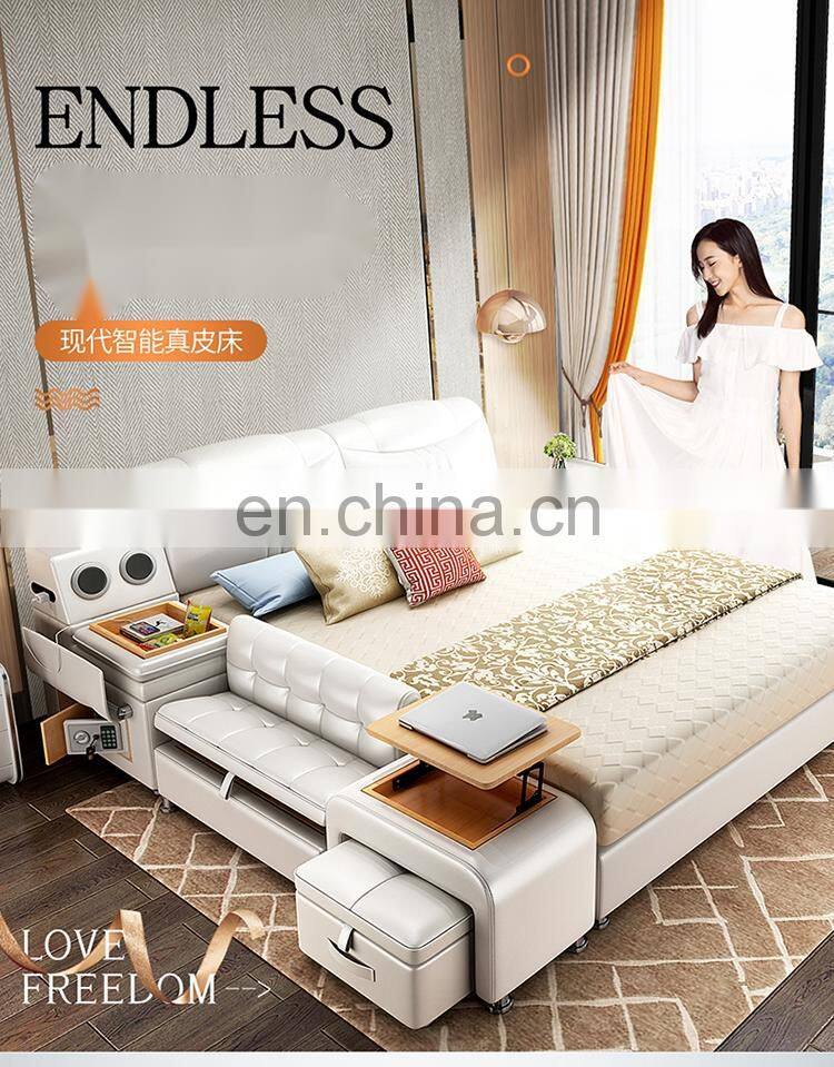 Multifunctional Massage Bedroom Furniture Genuine Leather Bed With Music