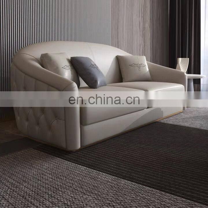 Leather Sofa Modern Minimalist Living Room Sofa Combination With LED Light