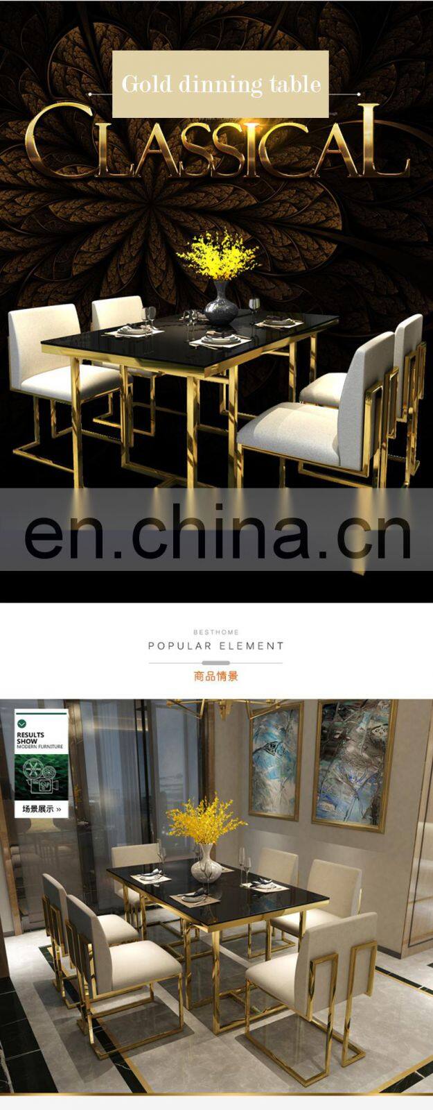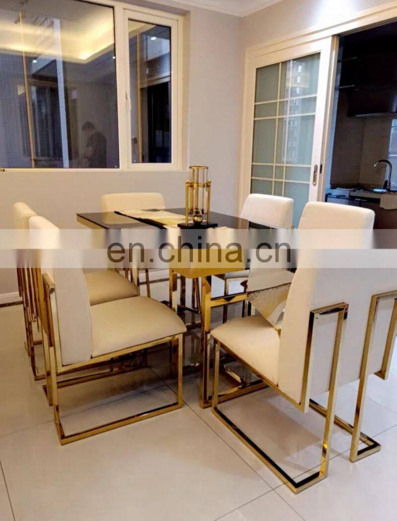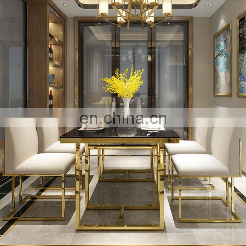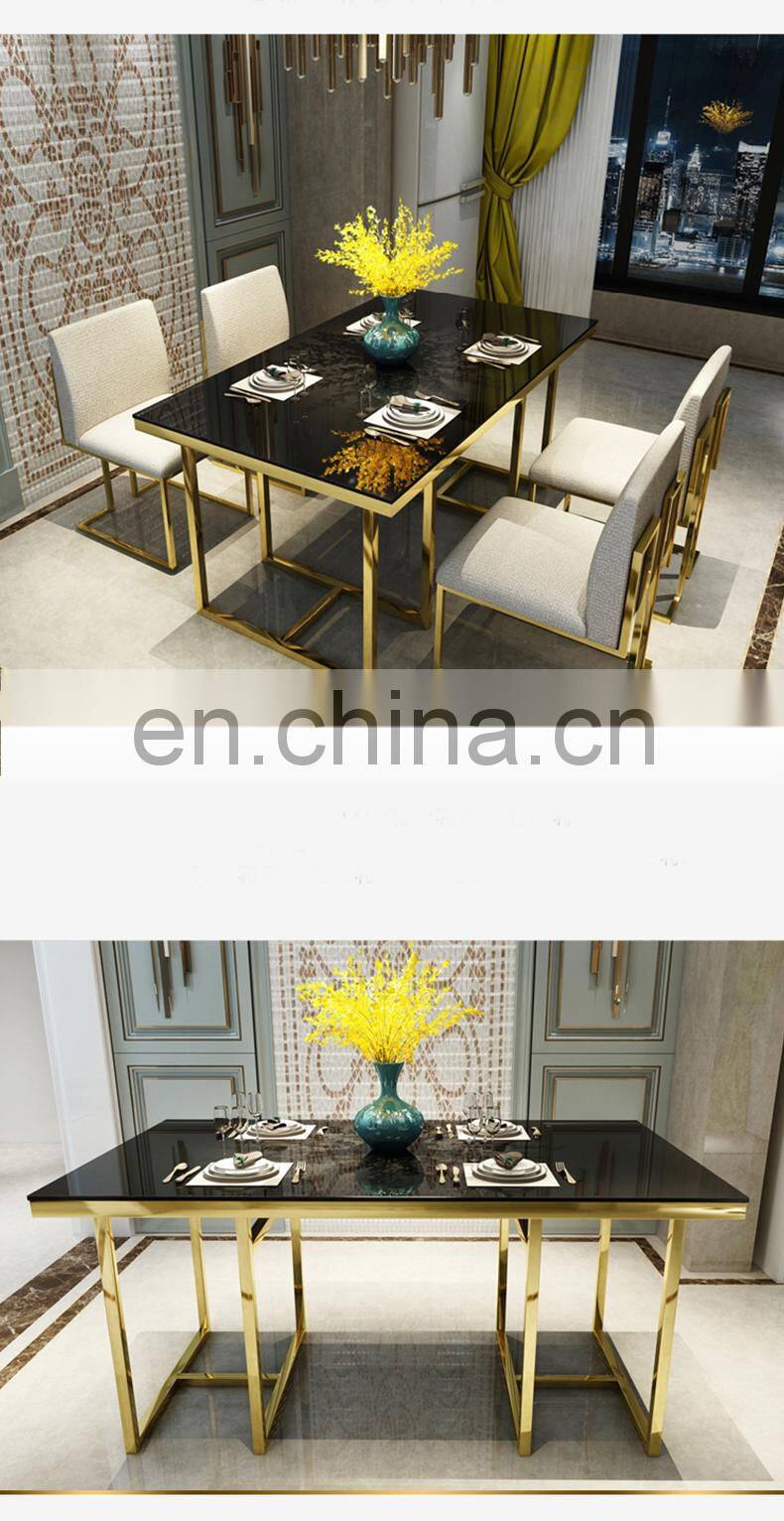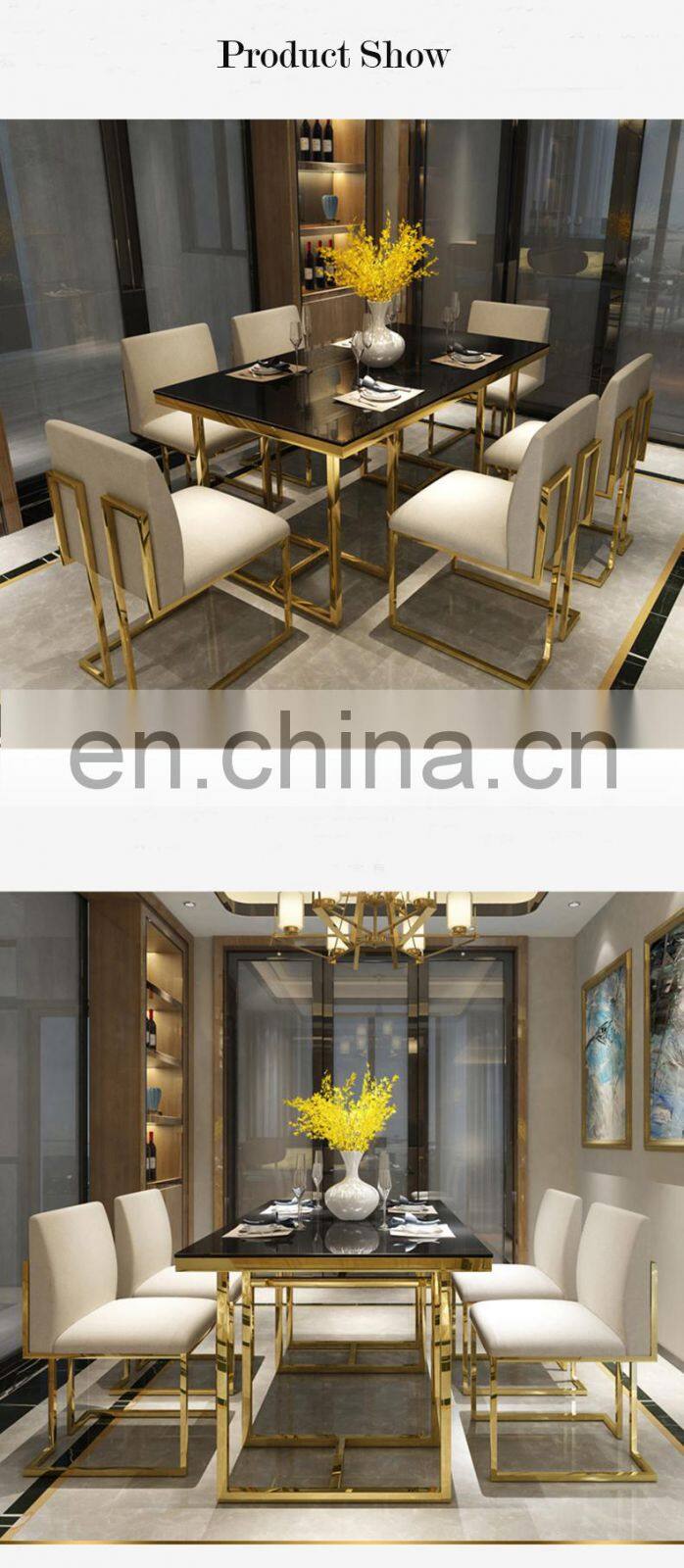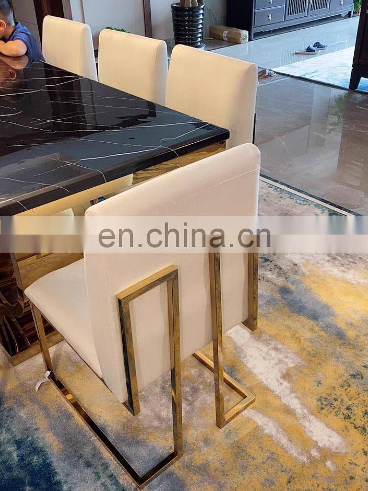 Marble Titanium Metal Dinning Room Sets Dinning Tables with Leather Chairs