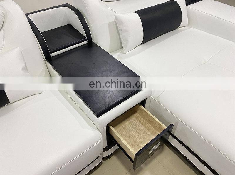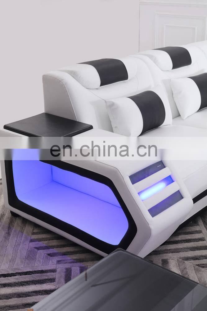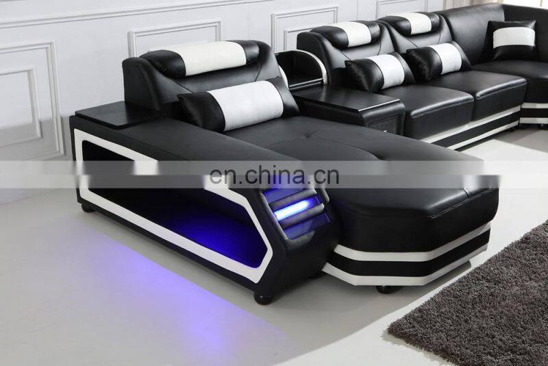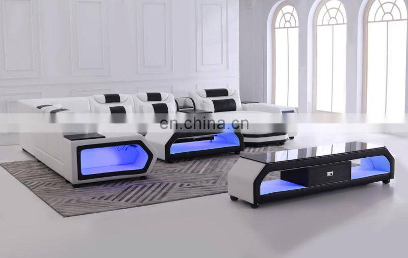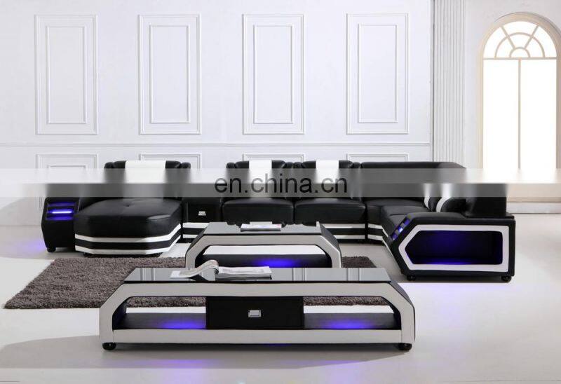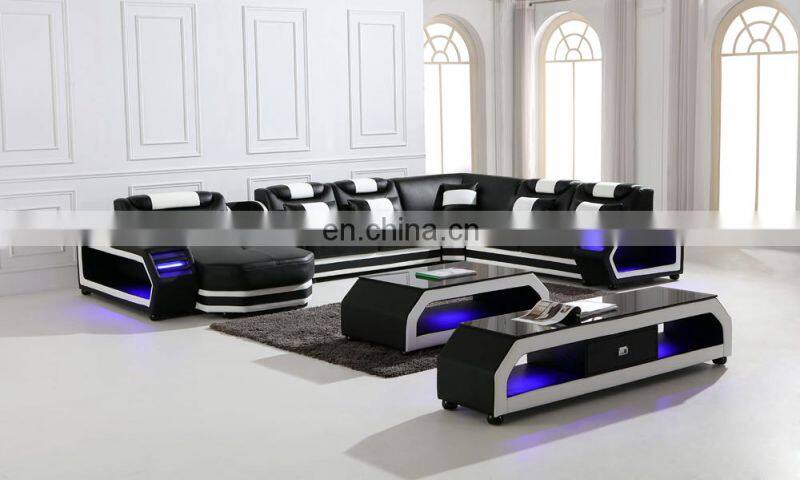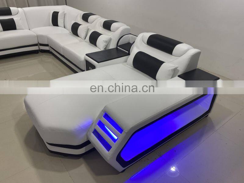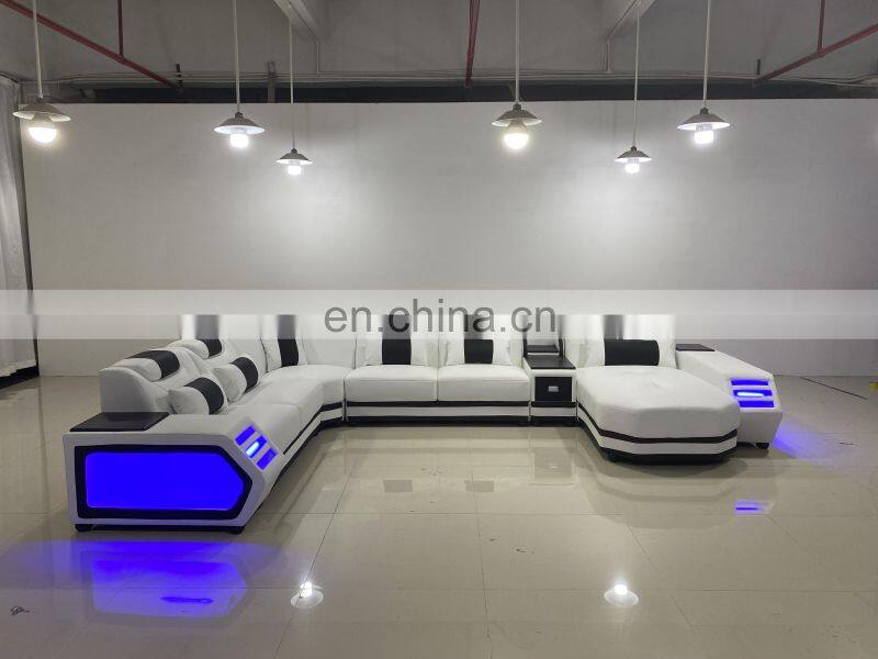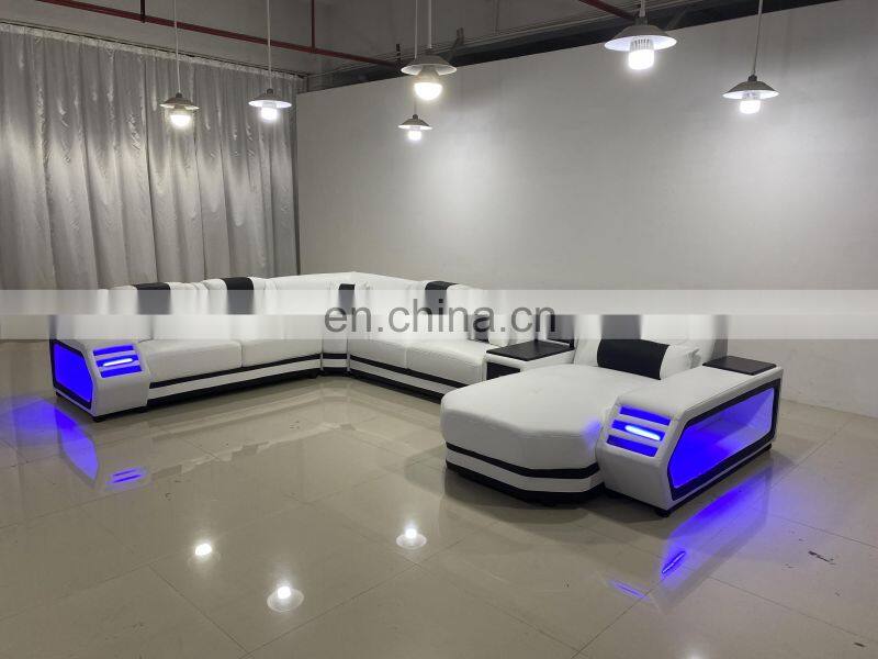 High End U Shaped Modular Lounge Sectional Sofas With LED Leather Living Room Sofa Set Furniture