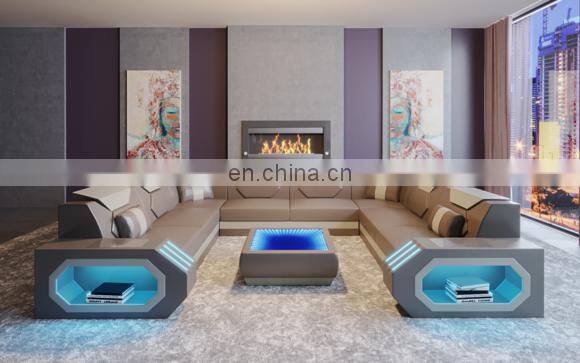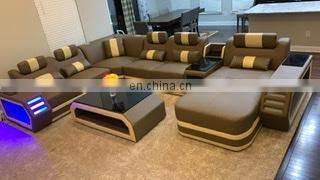 Latest design U shaped LED modern luxury sectional sofas couch muebles living room furniture sofa set divano