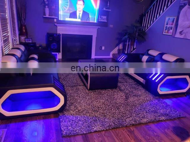 Hot Selling Sectional Living Room Furniture Sofa Bed Modern LED Genuine Leather Sofas Sets