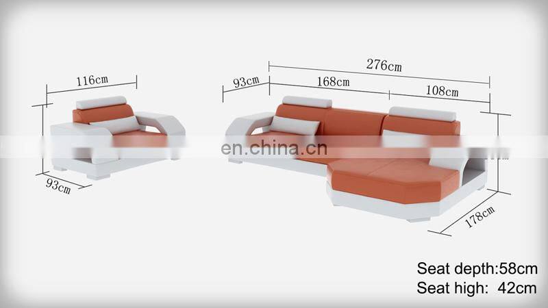 Genuine Solid Wood Leather Living Room Sofa Furniture With LED Lights I Shape Sofa Set Designs