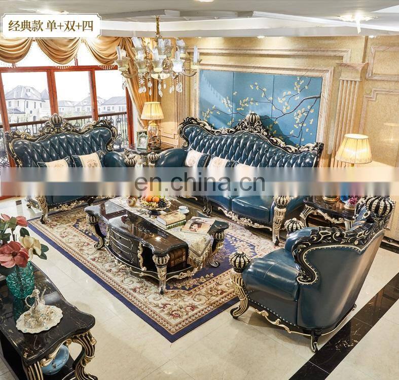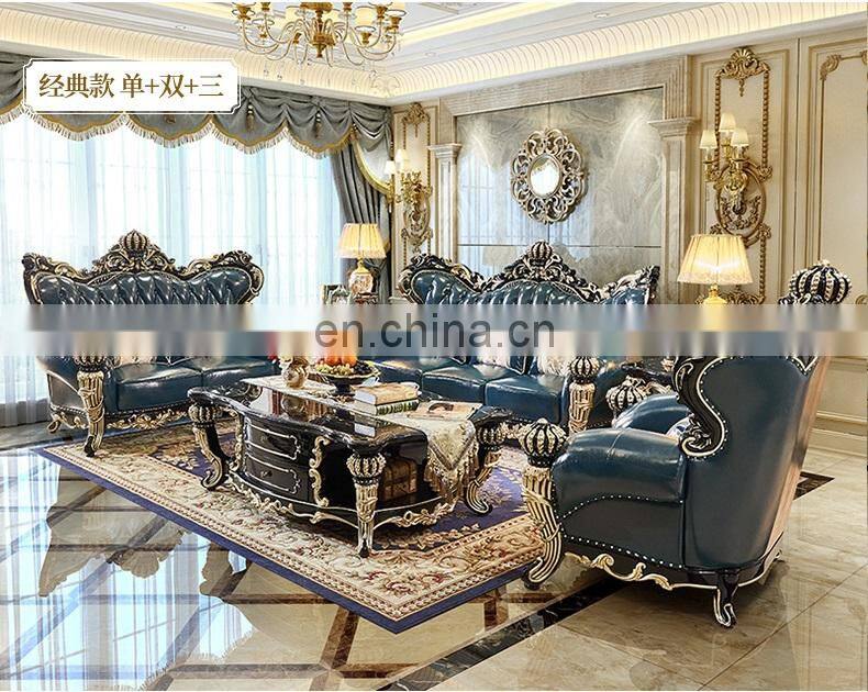 European Royal Style Sofas Luxury Gold Antique Classic Leather Living Room Furniture Sofa Set Designs
