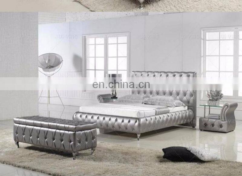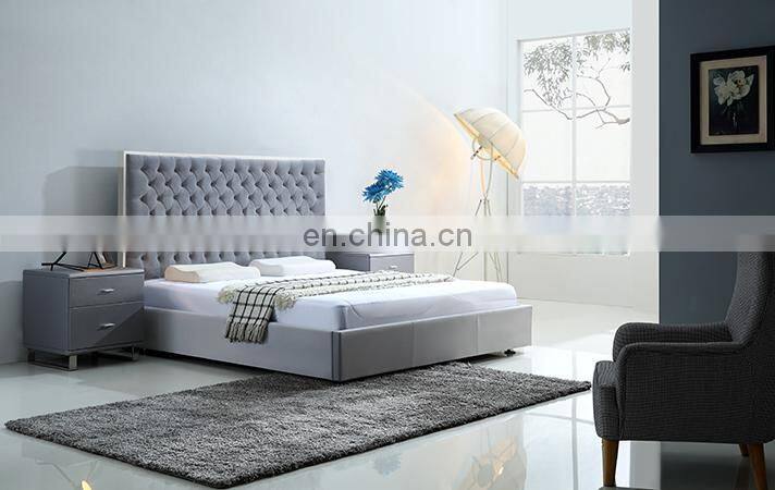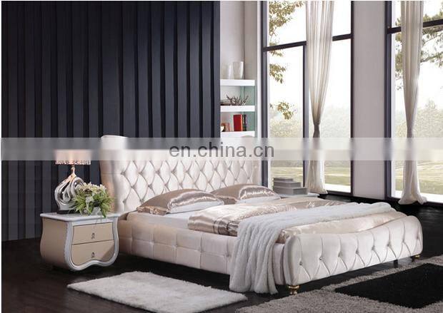 America Style Princess Leather Bed Modern Headboard Wooden Structure Bedroom Furniture Soft Bed Frame