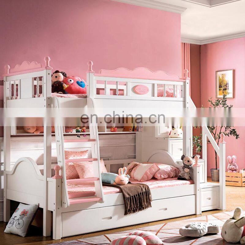 Children bedroom furniture set designs girls Pink color solid wood bunk bed kids children bunk bed