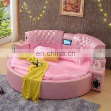 Pink Massage Smart Bed Big Size Girl Bedroom Furniture Leather Round Modern Bed Frame